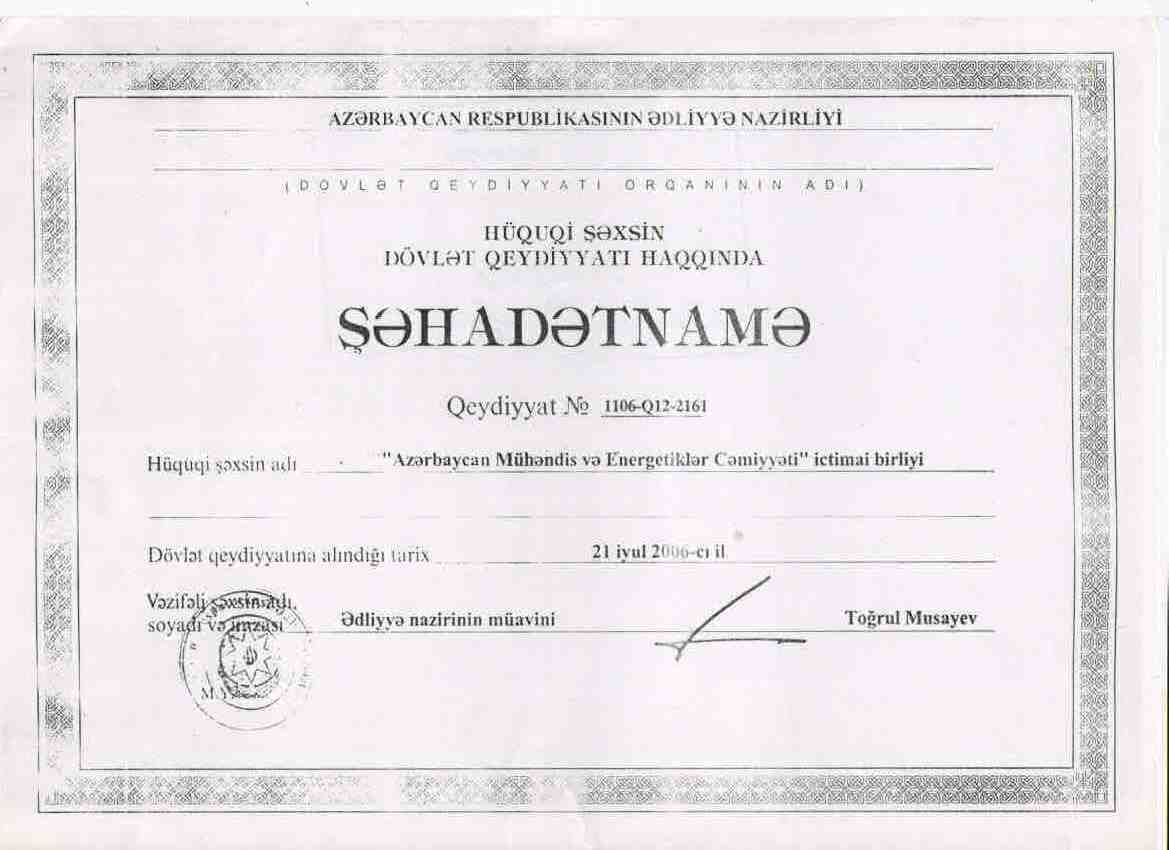 The association is the nongovernmental noncommercial organization uniting engineers and experts of power of the Azerbaijan Republic.